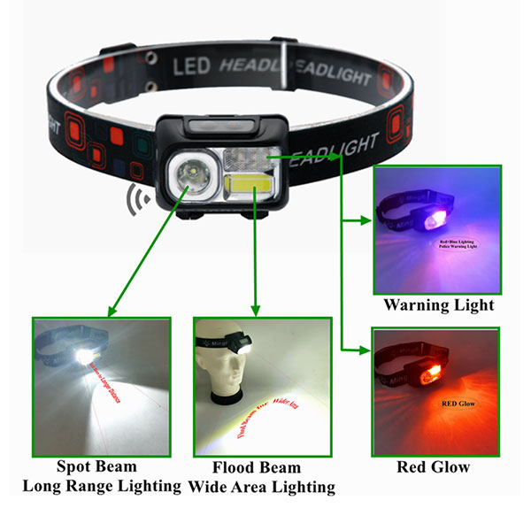 3 Watt LED + advanced COB LED + RED-BLUE Warning LED